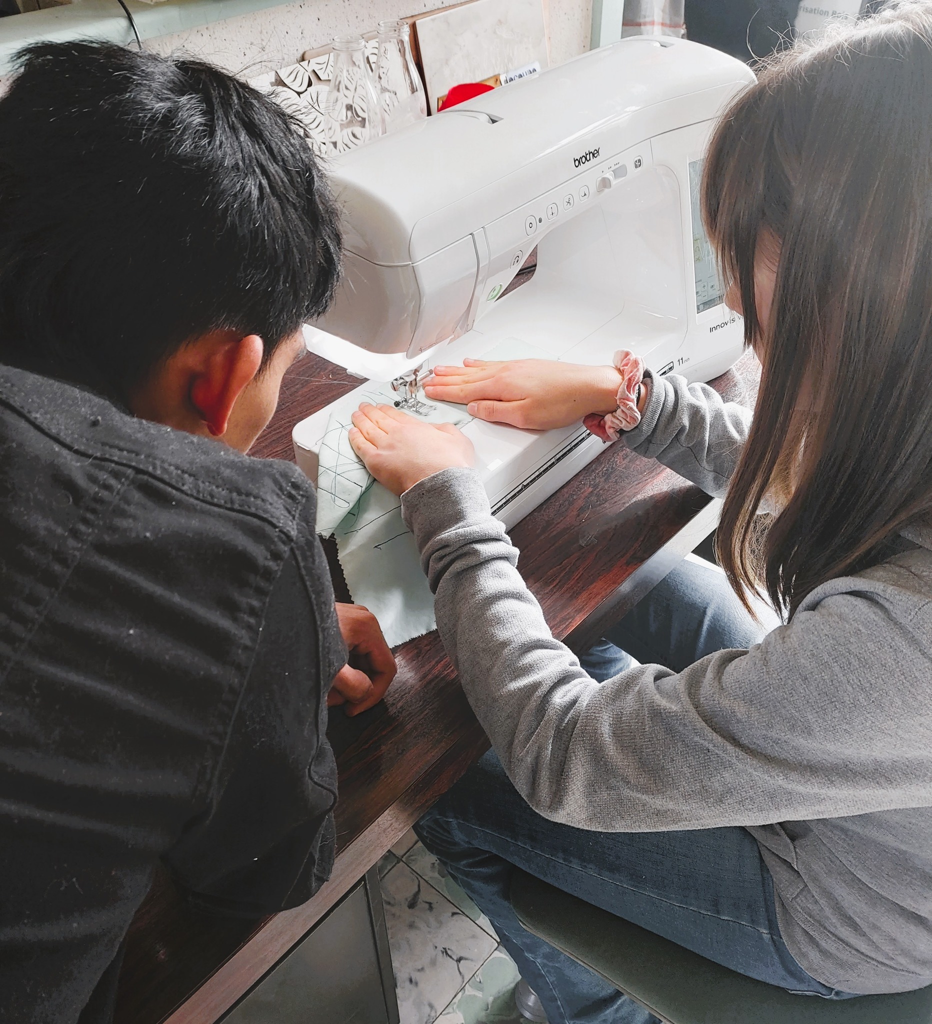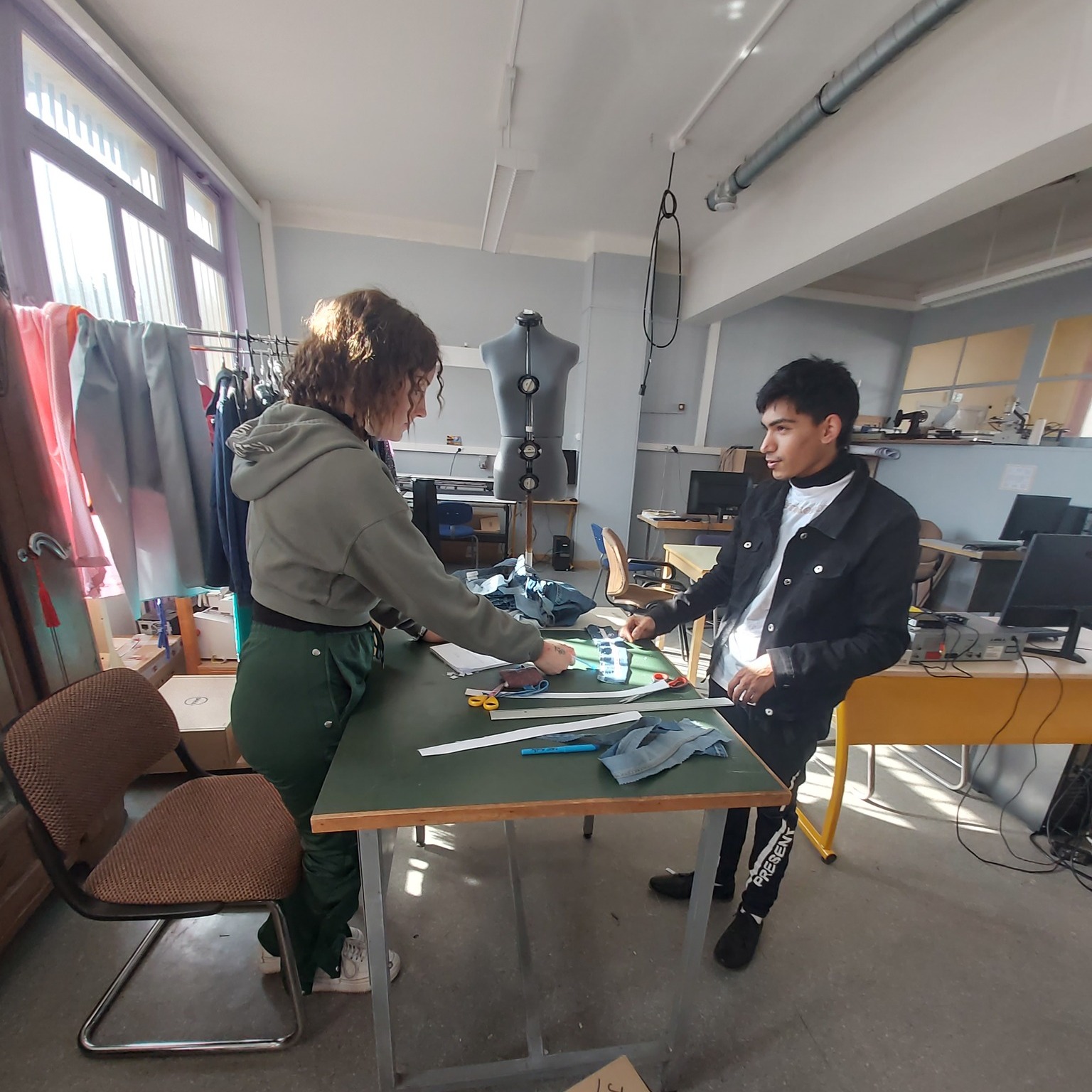 Afin de s’initier à l’utilisation des machines à coudre du lab et à la couture en général, Inès et Atilla se sont lancé·e·s dans la réalisation de bandeaux à cheveux en surcyclage, projet qu’iels allaient proposer par la suite en atelier avec des jeunes de l’association EN VIes d’Ici. L’idée avait été effectivement proposée à ce même groupe la semaine précédente. Bien accueillie, l’idée a été mise en place.
