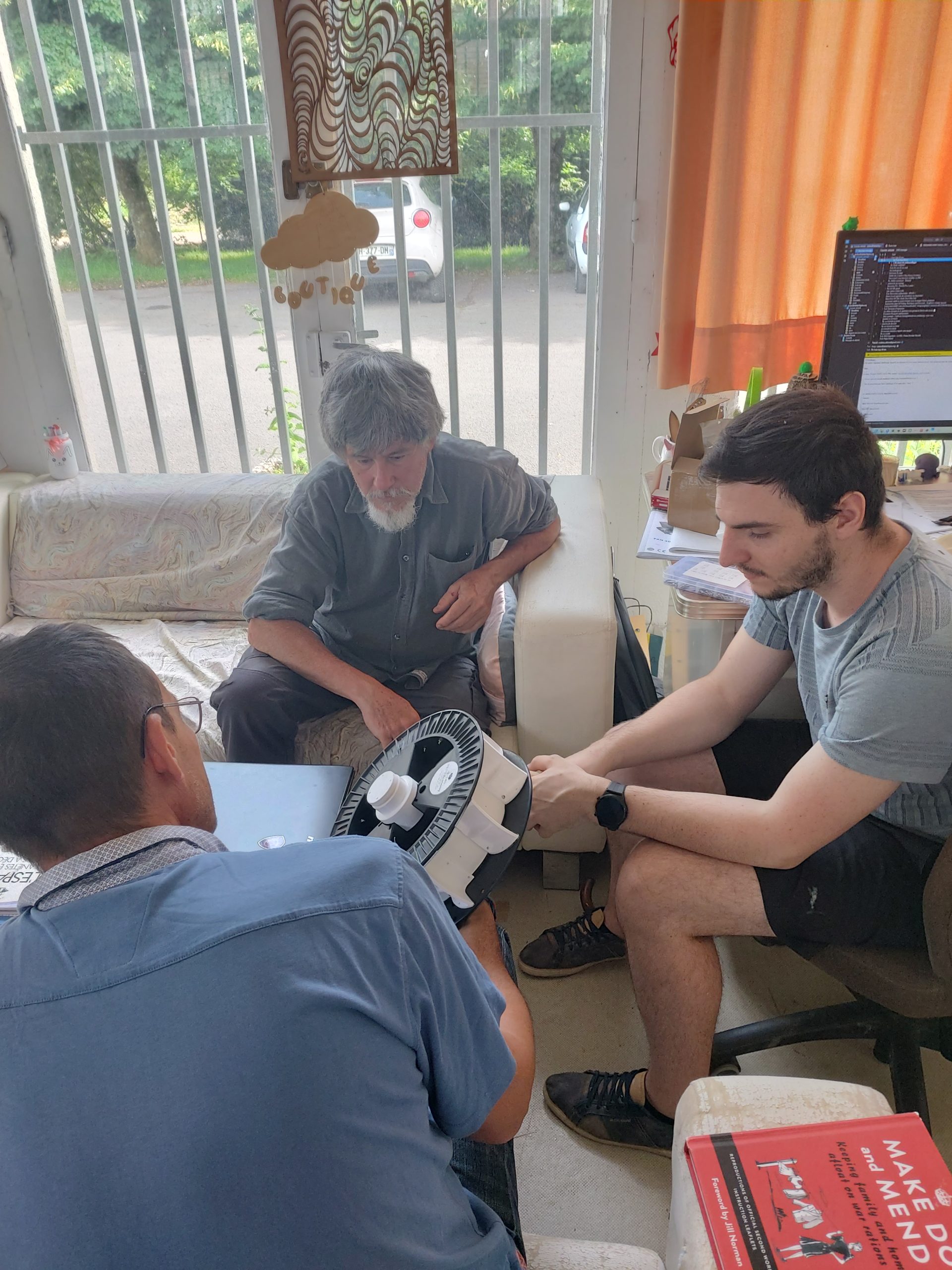 Dans le cadre du groupe de travail Ener-gène, plusieurs adhérents du fablab avancent en commun sur un prototypage d’une hydrolienne. Nous retrouvons Christophe, Damien, Antoine, moi-même, soutenus de Xavier…
