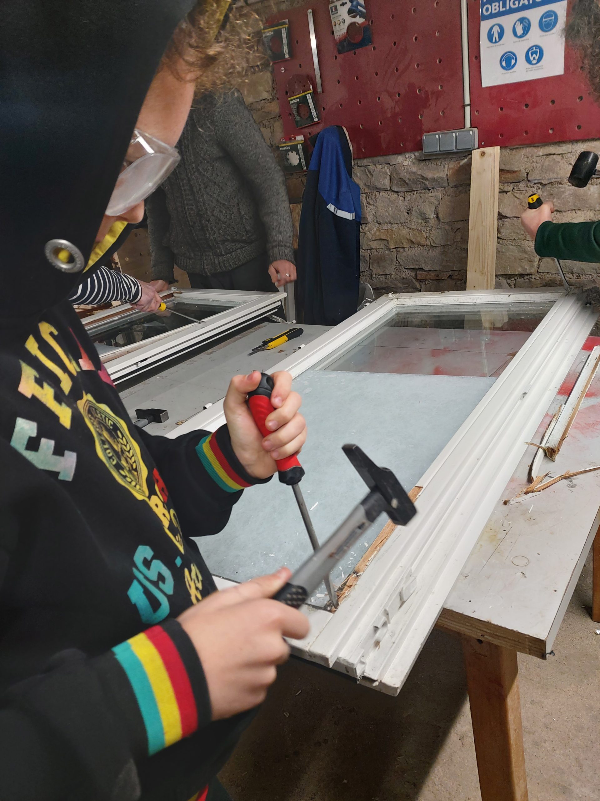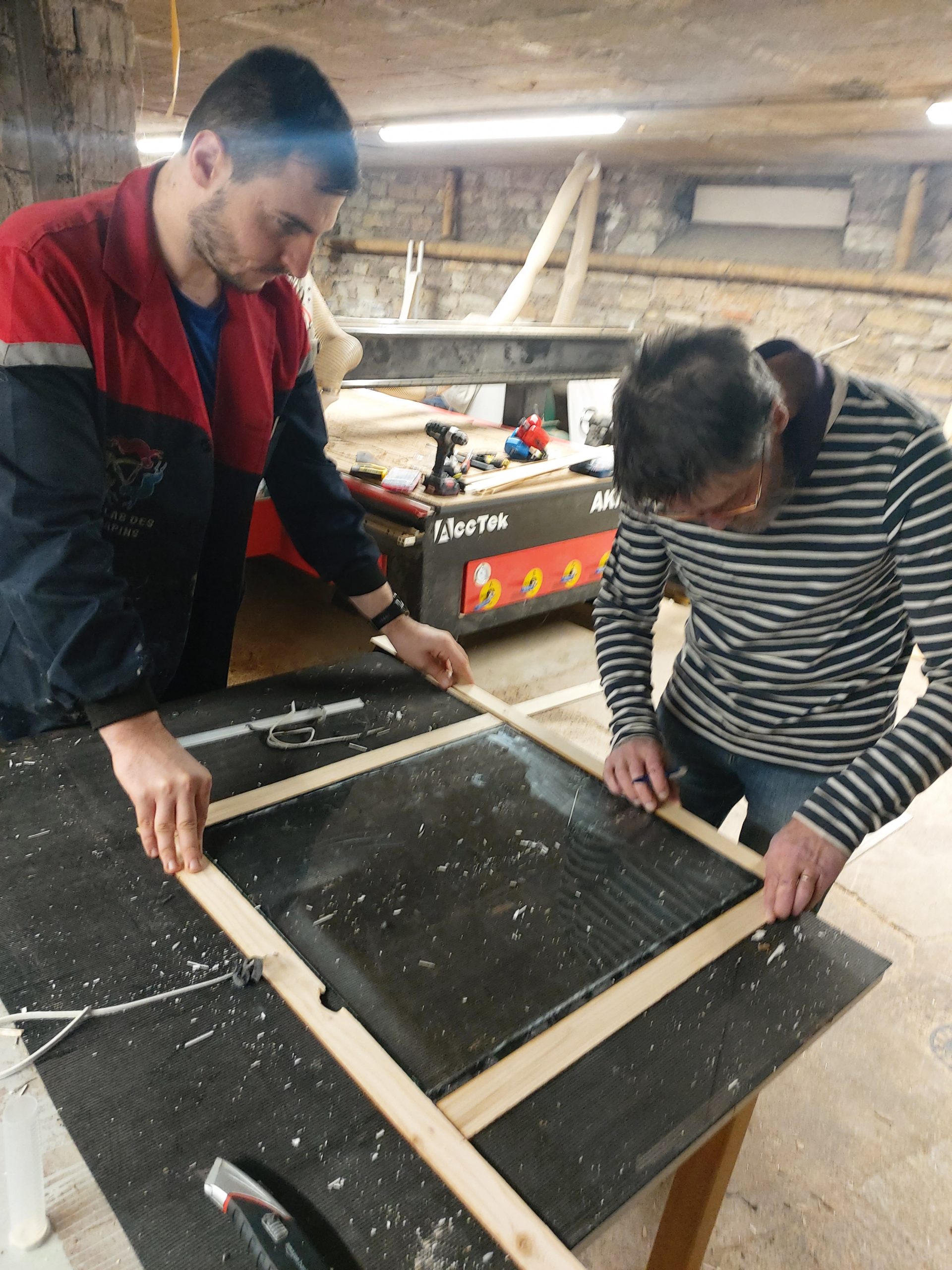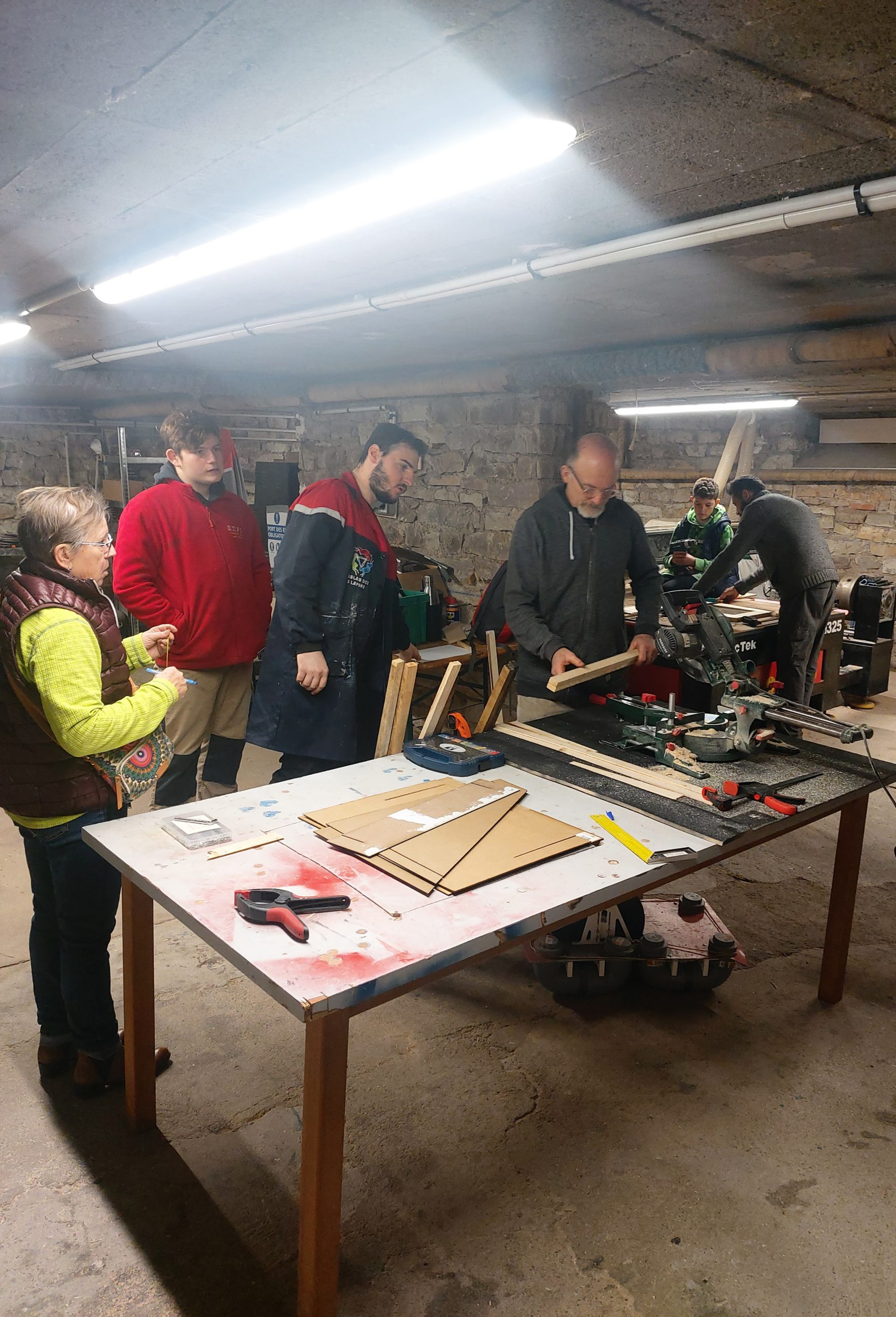 La deuxième séance s’est déroulée principalement autour de la découpe. Il s’agissait de préparer les différentes parties du coffre du four, mais aussi de s’initier à l’utilisation de nouvelles machines comme la fraiseuse, la découpeuse laser et de prendre en main en toute sécurité la scie circulaire.