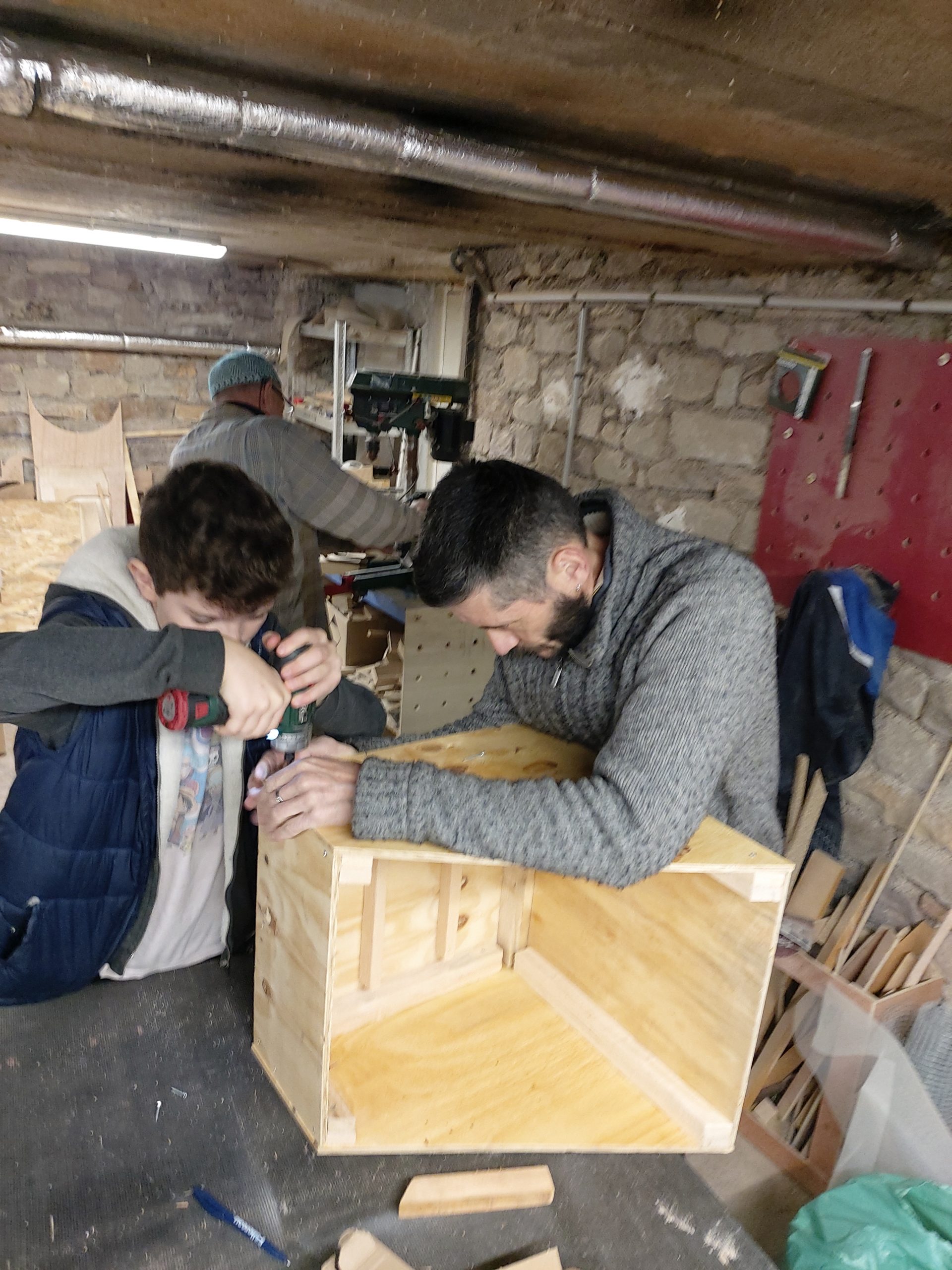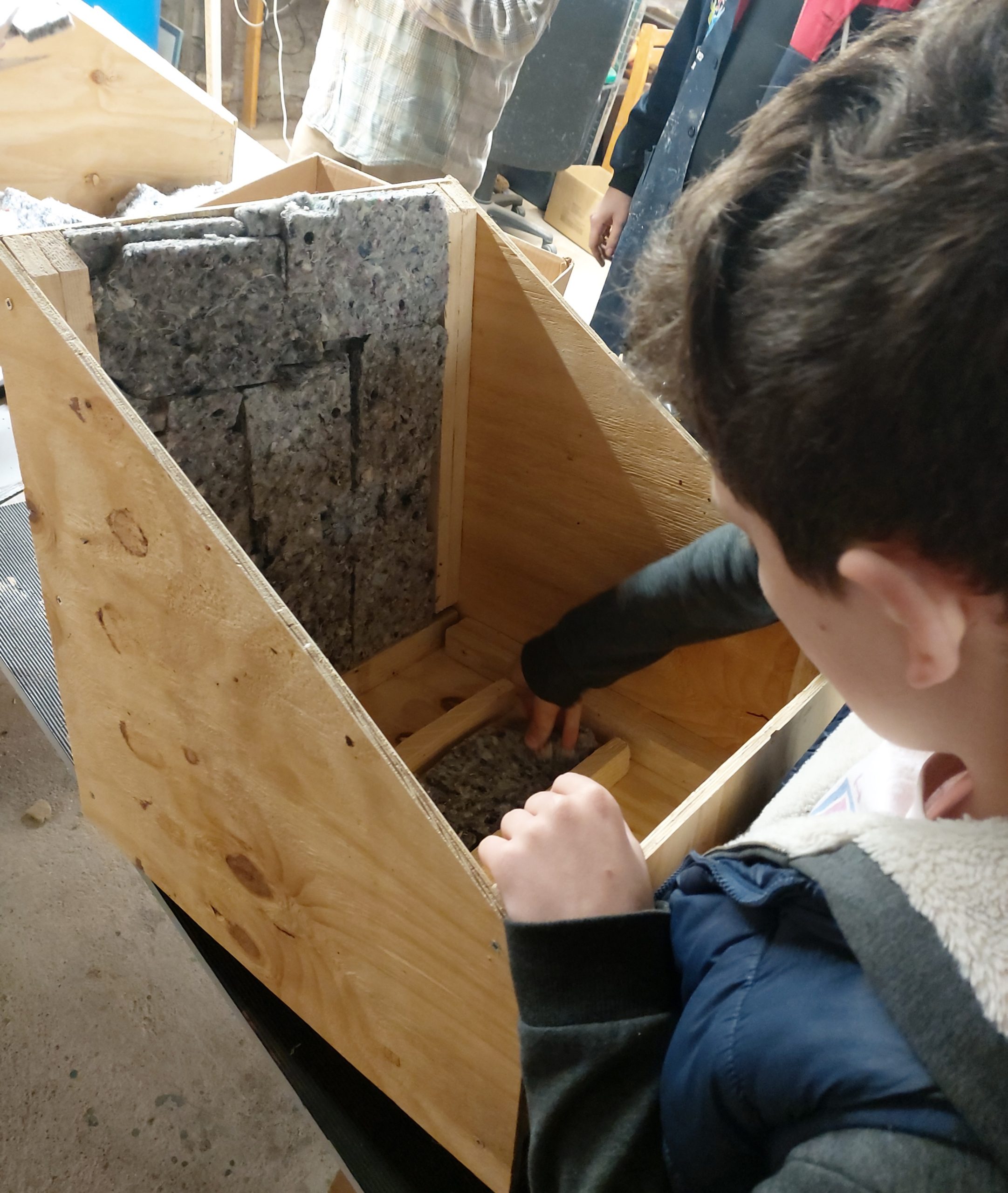 À l’issue de notre troisième séance, voilà deux fours solaires dont le coffre est assemblé et rembourré !